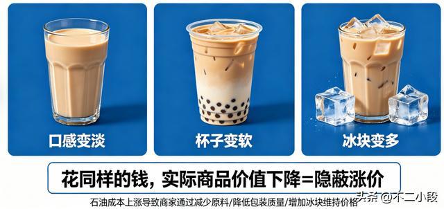 当你发现花同样的钱,买到的奶茶口感变淡了,杯子变软了,冰块变多了的时候,你其实已经为那笔高昂的石油账单付过钱了。这种商品价值的实质性下降,就是一种最典型、也最隐蔽的涨价。