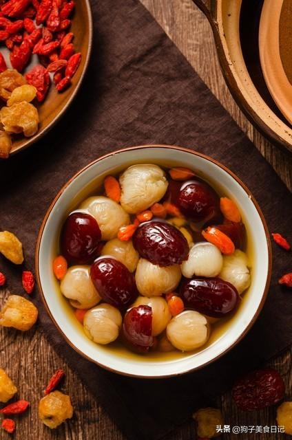 桂圆是“补心脾、安神”的小能手,红枣补气血,枸杞养肝明目。