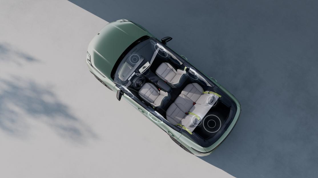 首发搭载的Lynk Sound聆境之声领克沉浸音响系统,拥有14扬声器的7.1环绕声音响布局,最大输出功率达1000W,配合四大虚拟场馆音效,为用户打造了全方位的车内听觉盛宴。